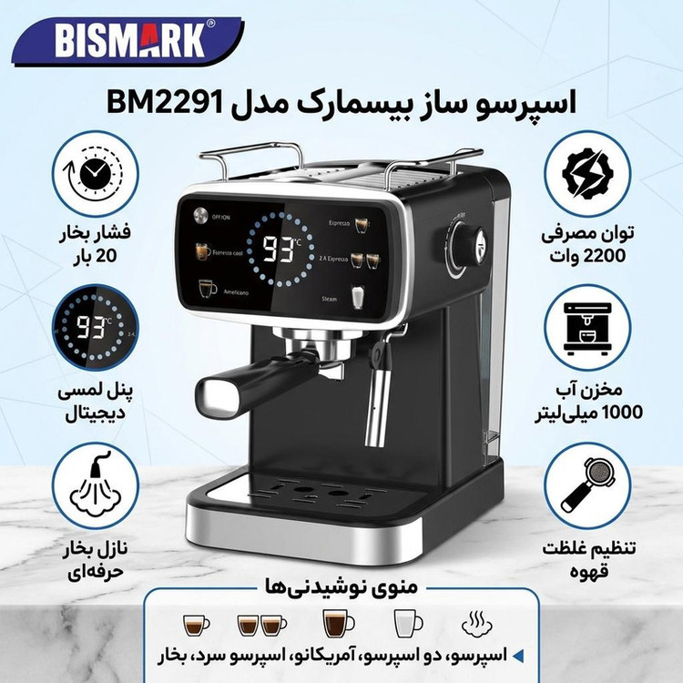 اسپرسو ساز 1000 میلی‌لیتر بیسمارک مدل BM2291