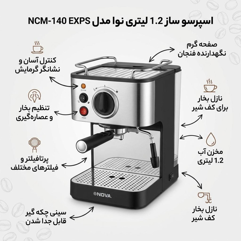 اسپرسو ساز 1.2 لیتری نوا مدل NCM-140 EXPS