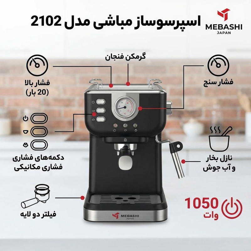 این دستگاه توان مصرفی 1050 واتی با فشار بخار 20 بار دارد. ظرفیت مخزن آب 1.5 لیتری دارد و برای شستشو براحتی جدا می شود. بدنه این دستگاه از استیل ضدزنگ و پلاستیک فشرده مقاوم ABS ساخته شده و پنل کترل دکمه ای ظاهری شیک و نوستالژی به آن داده است.