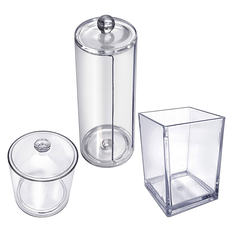 ترکیب سه محصول کاربردی جابراش مکعبی در ابعاد طول 8 عرض 8 ارتفاع 10 است و پد قطر 7 ارتفاع 17 است و پریتی قطر 9 ارتفاع 9 میباشد.جنس اکریلیک میباشد و جهت نظم بخشیدن به کلیه لوازم ارایشی بهداشتی میباشد