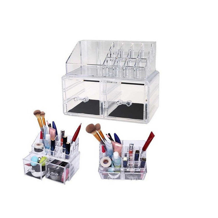 استند لوازم آرایشی 2 کشو ارتفاع کشوها تقریبا 9 سانتی متر می باشد جنس اکرولیک شفاف قابل شستشو هنگام شستشو فقط با مواد شوینده و ابر شسته شود