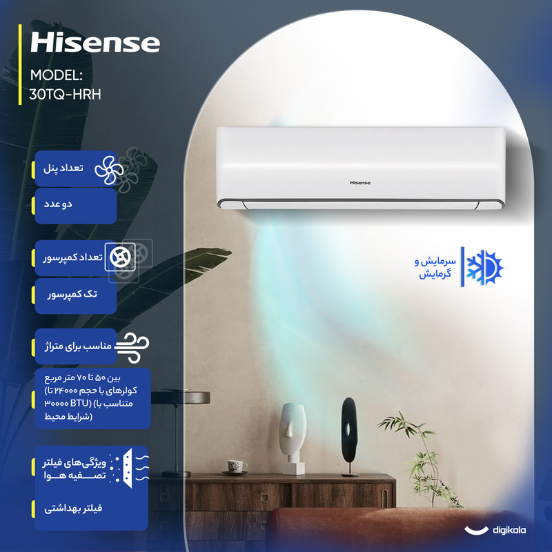 نمایشگر دیجیتال روی ریموت , کنترل کامل تنظیمات دما و فن , تنظیم تایمر از طریق ریموت , تنظیم جهت پرتاب باد از راه دور , قابلیت تنظیم حالت توربو از ریموت , طراحی ارگونومیک و سبک