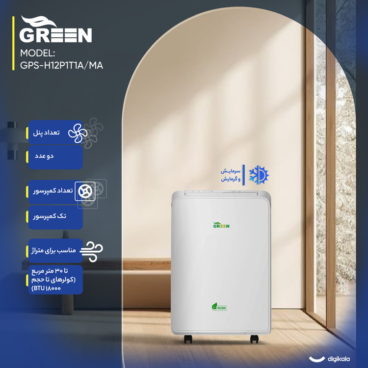 کنترل کامل تنظیمات دما و فن , تنظیم تایمر از طریق ریموت , تنظیم جهت پرتاب باد از راه دور , طراحی ارگونومیک و سبک